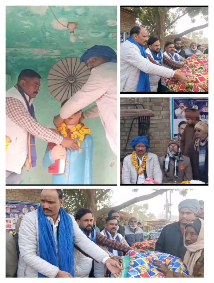 सुल्तानपुर,,वार्ड नंबर 37 के जिला पंचायत प्रत्याशी सुल्तान उर्फ मद्दर का आज तीसरे दिन भी रजाई कंबल वितरण का कार्यक्रम रहा जारी ठंड के मौसम को देखते हुए, इस सामाजिक सरोकार के तहत बड़ी संख्या में लगभग 600 जरूरतमंद, असहाय और गरीब परिवारों को रजाई कंबल वितरित किए गए।इस पहल से इन परिवारों को कड़ाके की ठंड से राहत मिल सकी। कार्यक्रम का उद्देश्य समाज के अंतिम व्यक्ति तक सहायता पहुंचाना था। कार्यक्रम के दौरान आजाद समाज पार्टी के नेता व वार्ड नंबर 37 से जिला पंचायत पद के प्रत्याशी सुल्तान उर्फ मद्दर ने कहा गरीब और जरूरतमंद लोगों की सेवा करना मेरे लिए सबसे बड़ी खुशी है। समाज के अंतिम व्यक्ति तक सहायता पहुंचाना ही हमारा उद्देश्य है। आगे भी इस तरह के जनकल्याणकारी कार्य निरंतर जारी रहेंगे।कंबल पाकर लाभार्थियों के चेहरों पर खुशी साफ दिखाई दी। सुल्तानपुर जिला अध्यक्ष राजकुमार भीम ने बताया की वार्ड नंबर 37 के जो प्रत्याशी हैं इनको जीतने के लिए हम लोग कड़ी मेहनत कर रहे हैं और जरूर पड़ी तो हमारे राष्ट्रीय अध्यक्ष जी का कार्यक्रम सुल्तानपुर के वार्ड नंबर 37 में भी होगा। ग्रामीणों ने इस पहल की सराहना करते हुए कहा कि ऐसे आयोजन न सिर्फ जरूरतमंदों को राहत देते हैं, बल्कि समाज में आपसी भाईचारा और सहयोग की भावना को भी मजबूत करते हैं इस अवसर पर जिला अध्यक्ष राजकुमार भीम,चंद्रराज भीम जिला प्रभारी 188, जैद खान जिला महासचिव, बद्री प्रसाद बौद्ध जिला कोषाध्यक्ष, जैनुल आबेदीन,आजाद समाज पार्टी के सुल्तानपुर सहित कई गणमान्य लोग उपस्थित रहे, जिन्होंने कार्यक्रम को सफल बनाने में सहयोग किया