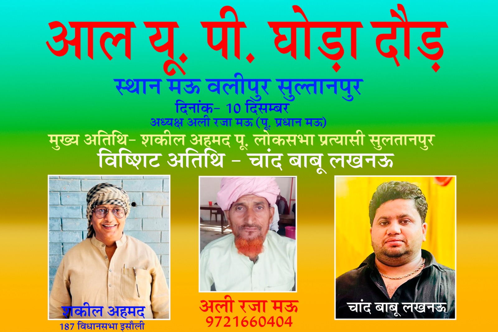 सुलतानपुर। इसौली विधानसभा क्षेत्र के बल्दीराय तहसील स्थित मऊ गांव में बुधवार को होने वाली ऑल यूपी घोड़ा दौड़ प्रतियोगिता को लेकर माहौल उत्साह से भरा हुआ है। विशाल मैदान में तैयारियां अंतिम चरण में पहुँच चुकी हैं और आयोजन स्थल पूरी तरह दुलहन की तरह सजा दिया गया है।आयोजन समिति के अध्यक्ष अली रज़ा मऊ लगातार तैयारियों की निगरानी कर रहे हैं। दौड़ ट्रैक, सुरक्षा इंतजाम और दर्शक दीर्घा को दुरुस्त कर दिया गया है। आयोजकों के मुताबिक इस बार प्रतियोगिता पहले की तुलना में अधिक भव्य और रोमांचक रहेगी।कार्यक्रम में मुख्य अतिथि के रूप में पूर्व सपा लोकसभा प्रत्याशी शकील अहमद तथा इसौली के युवा बसपा नेता अफसार अहमद शिरकत करेंगे। वहीं विशिष्ट अतिथि के रूप में चांद बाबू लखनऊ की मौजूदगी आयोजन को और आकर्षक बनाएगी।प्रदेश भर से कई नामचीन घोड़े प्रतियोगिता में उतरने वाले हैं,जिससे मुकाबला कड़ा और बेहद रोमांचक होने की उम्मीद है।